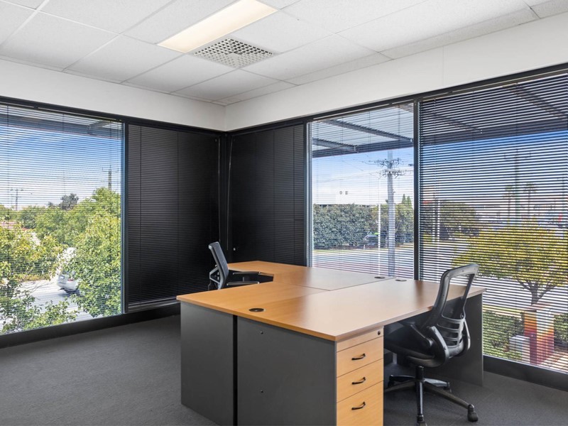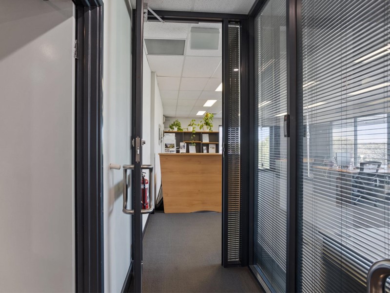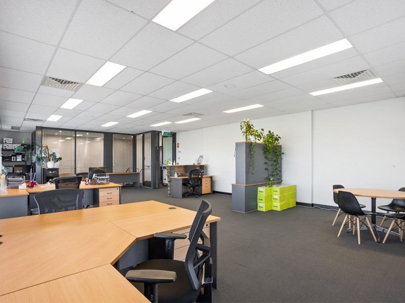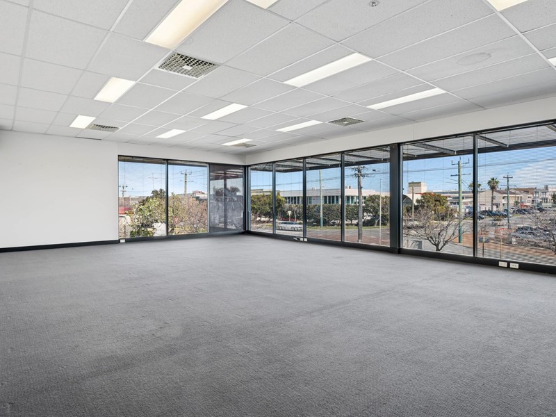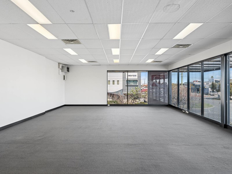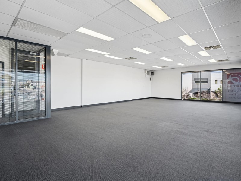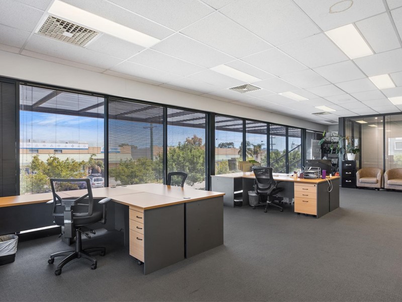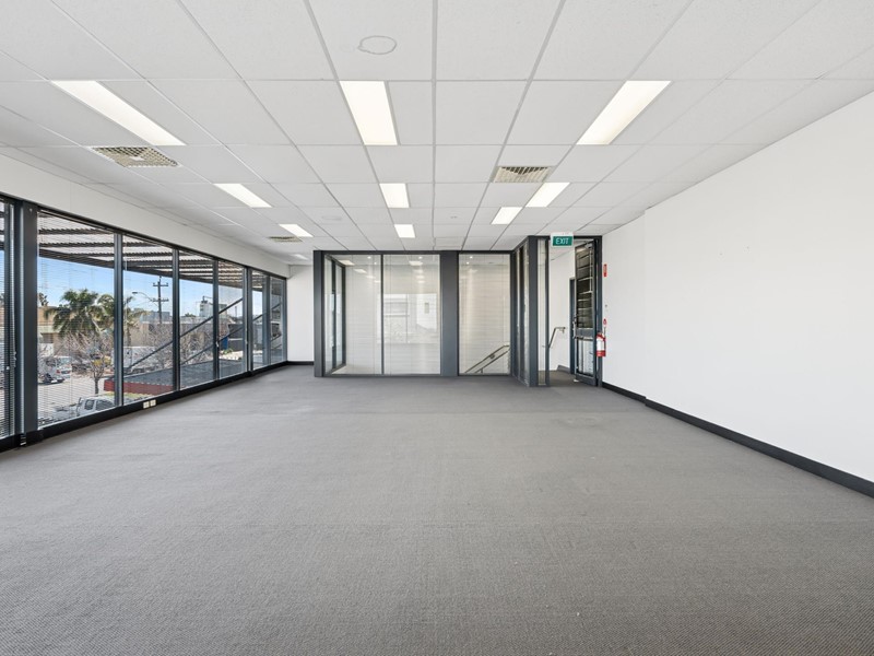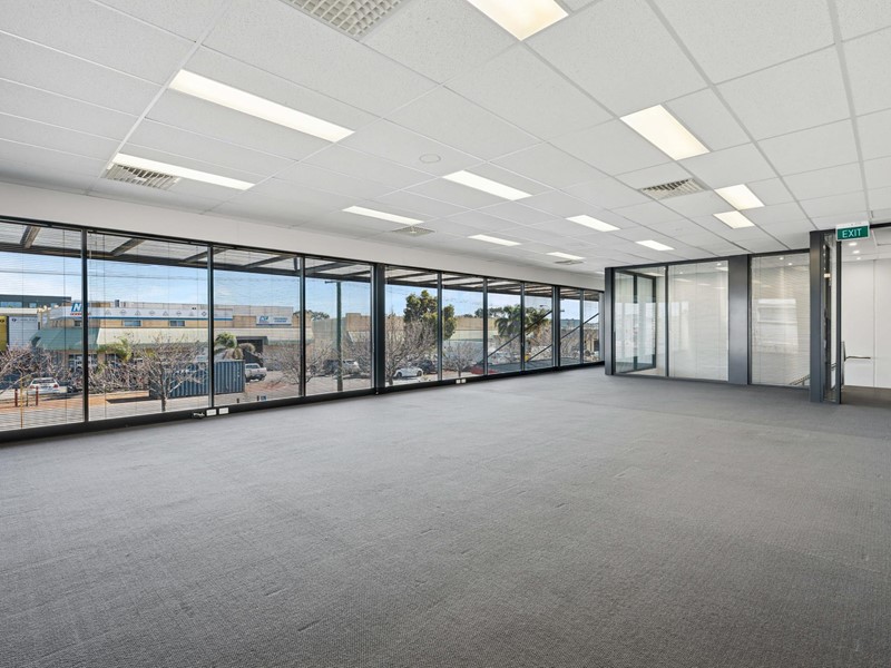 Modern open plan 1st floor offices (approx 100sqm) in small building, surrounded by glass walls that allows natural light to flow throughout.