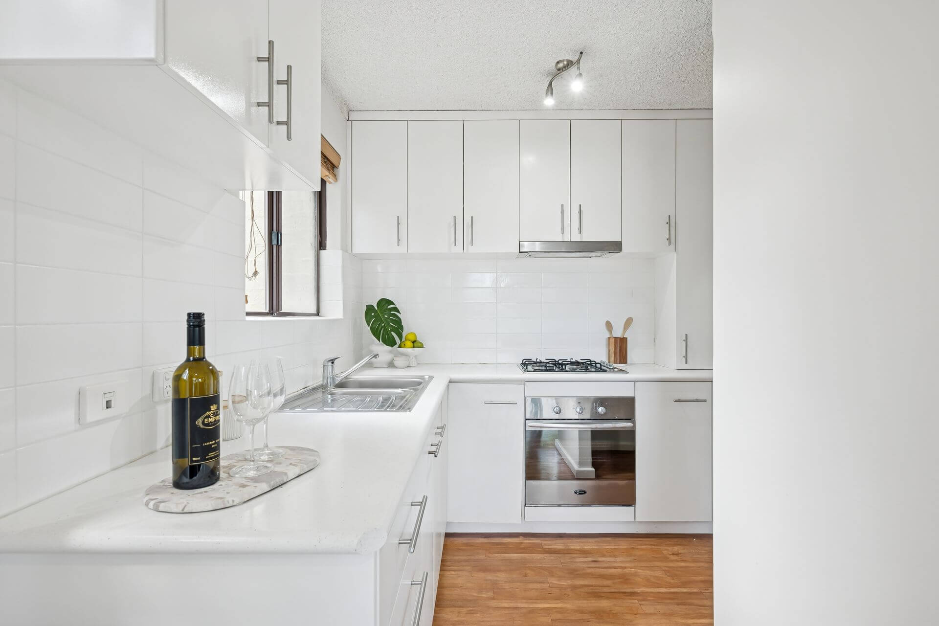 - Kitchen with ample storage and gas appliances